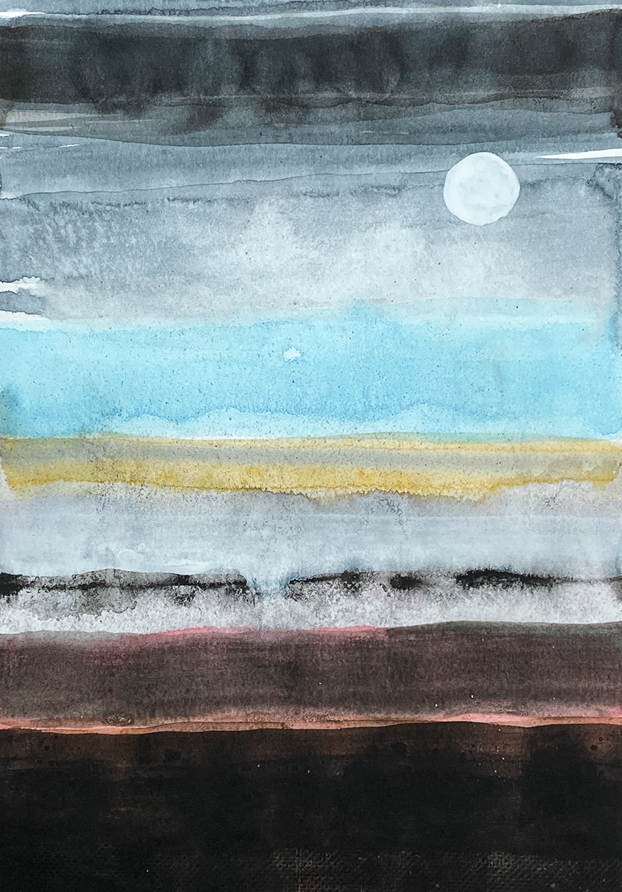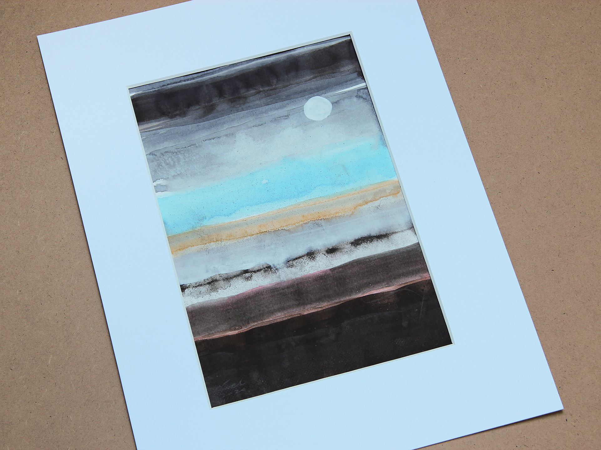 Akwarela, gwasz, tusz. 18x27 cm. W passe-partout do ramki 30x40 cm.