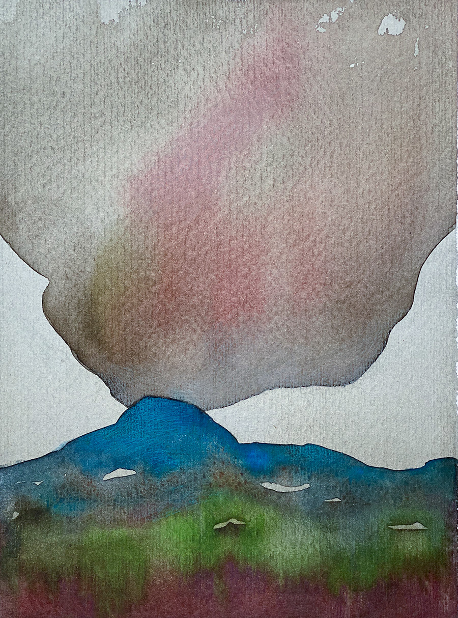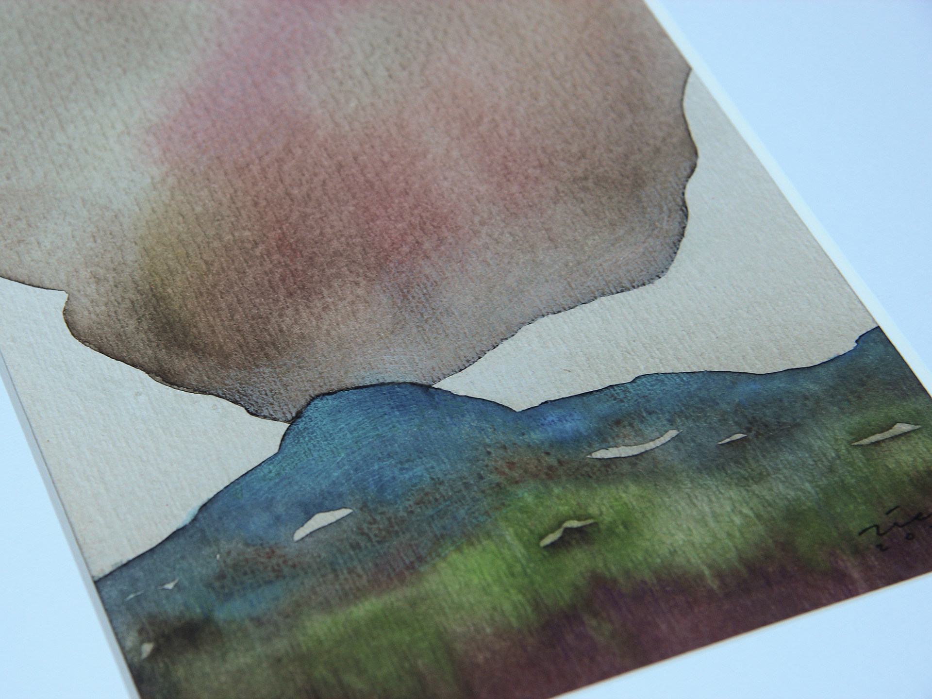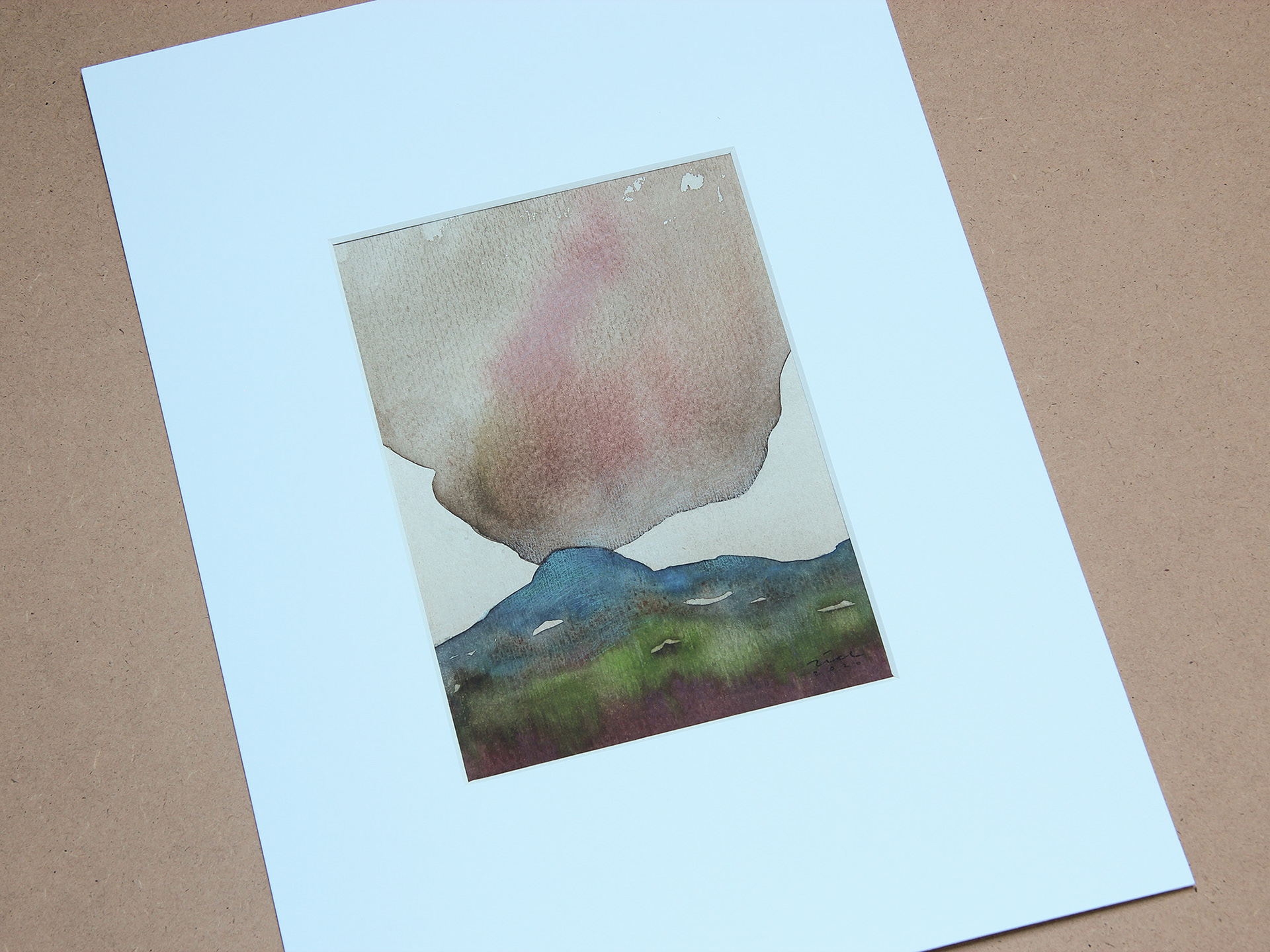 Akwarela / mixmedia. 15x21 cm. W passe-partout do ramki 30x40 cm.