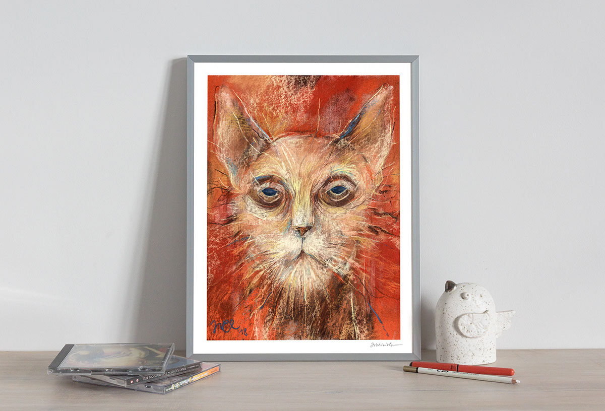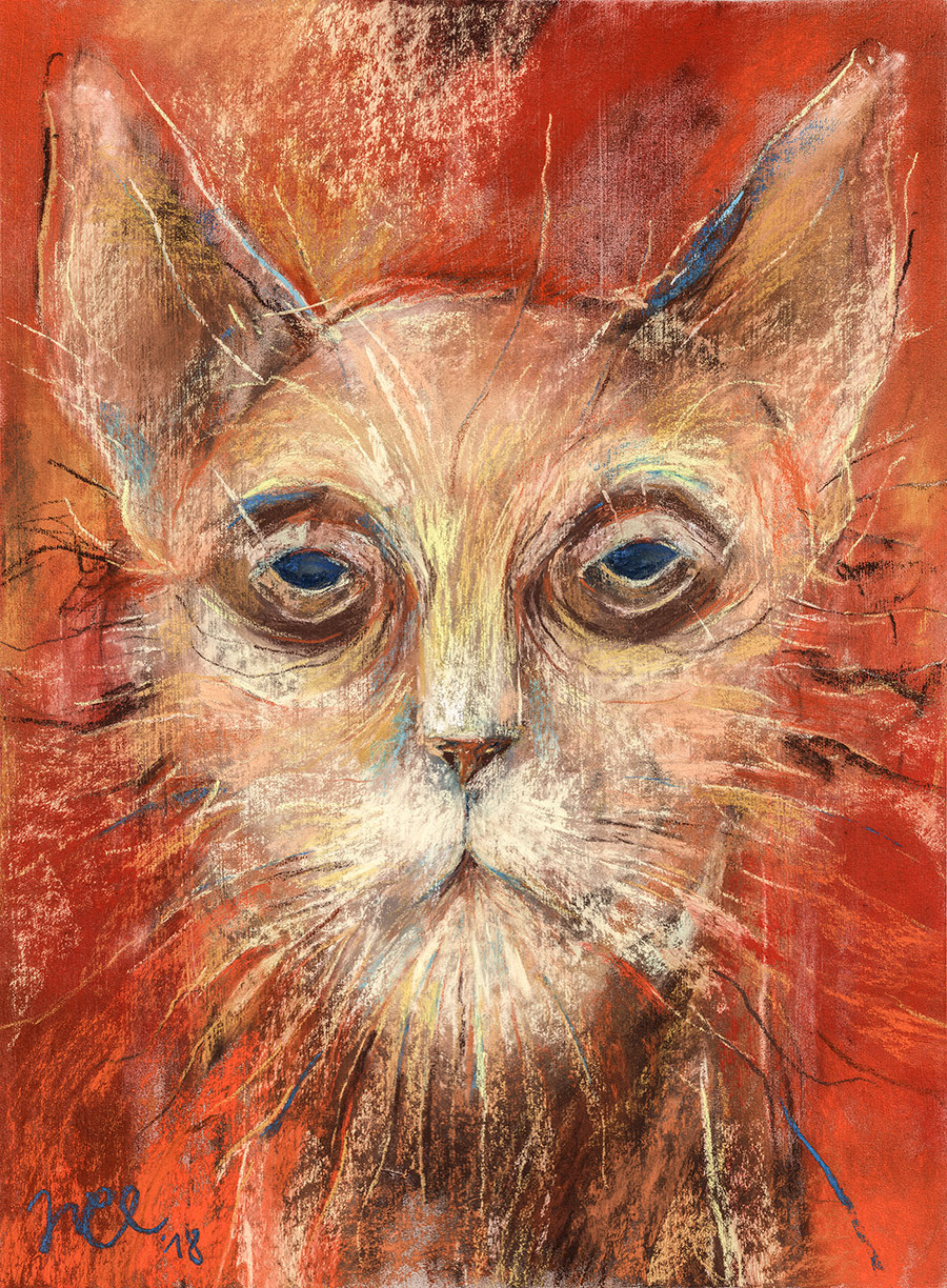 Cat No. 23. "The Hermit". Cats series illustration - pastel drawing
