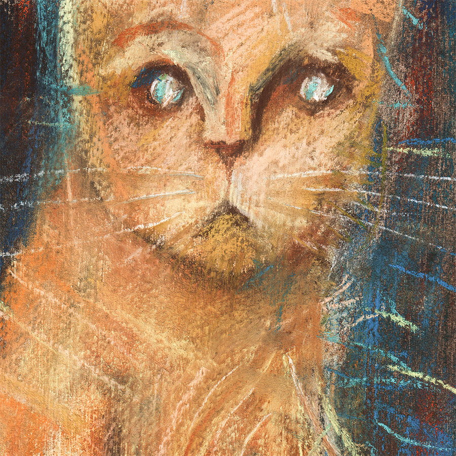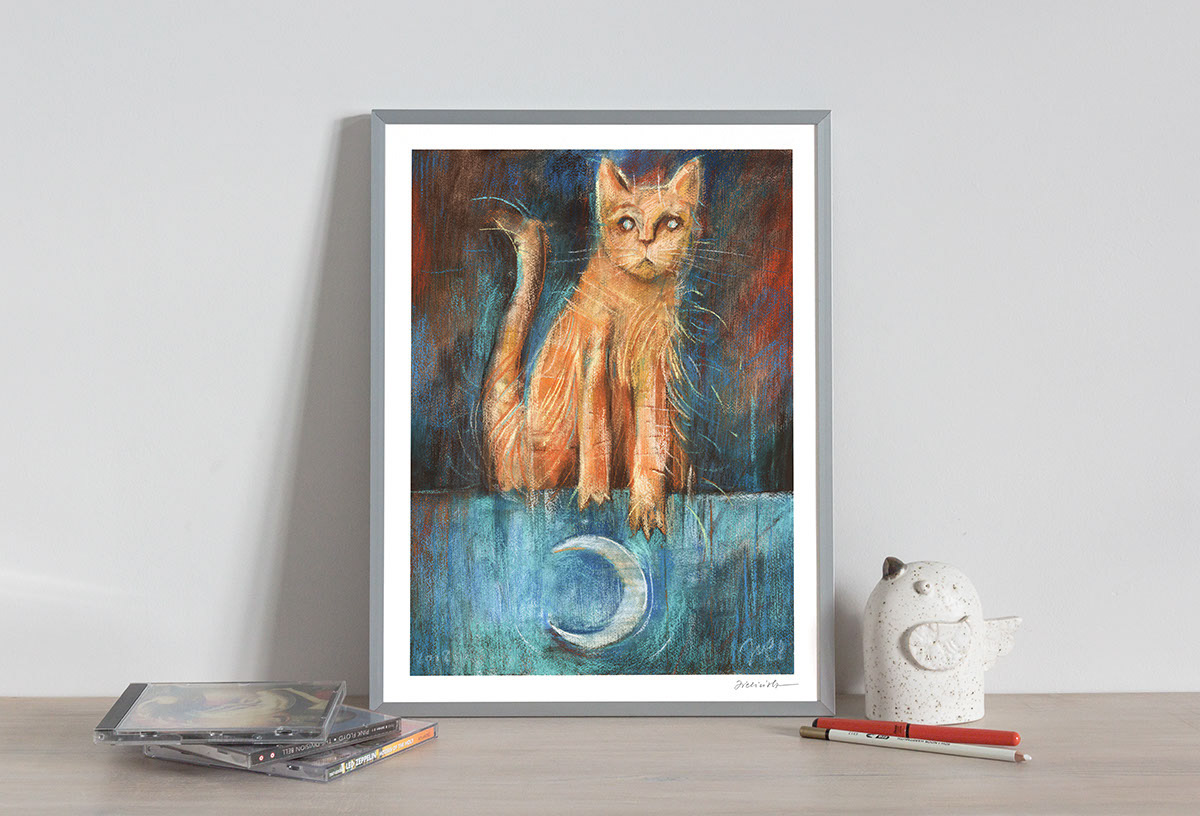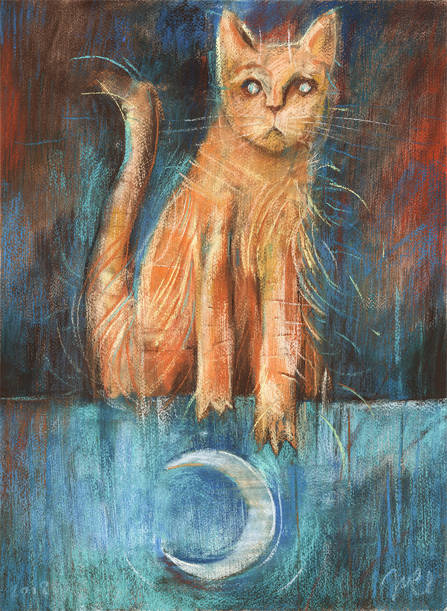 I found the moon. Cat No. 24. Cats series illustration - pastel drawing.