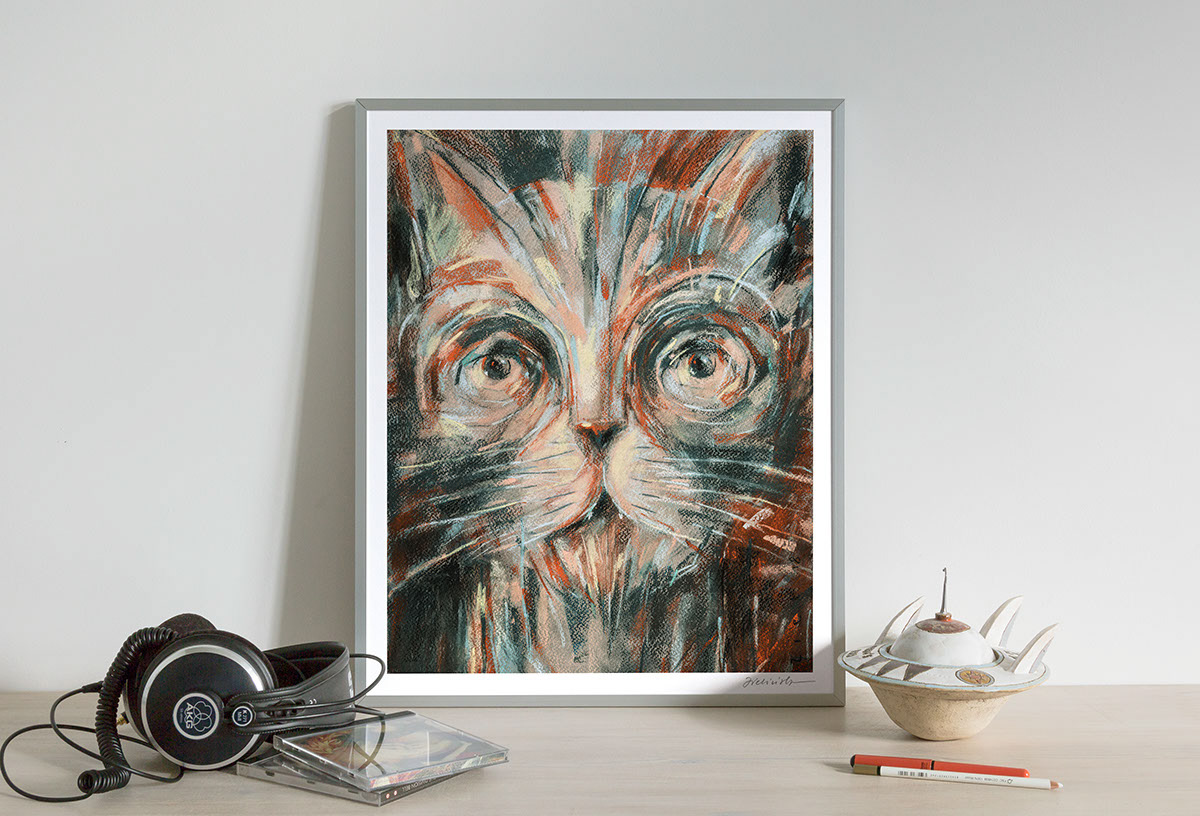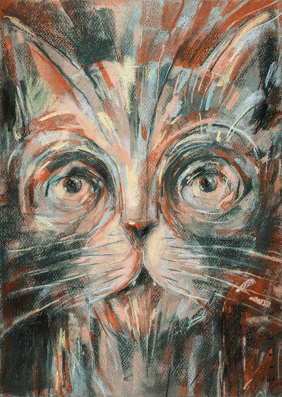Cat No. 49. Cats series illustration - pastel drawing. Soft pastels on Fabriano Tiziano paper. 32x45 cm