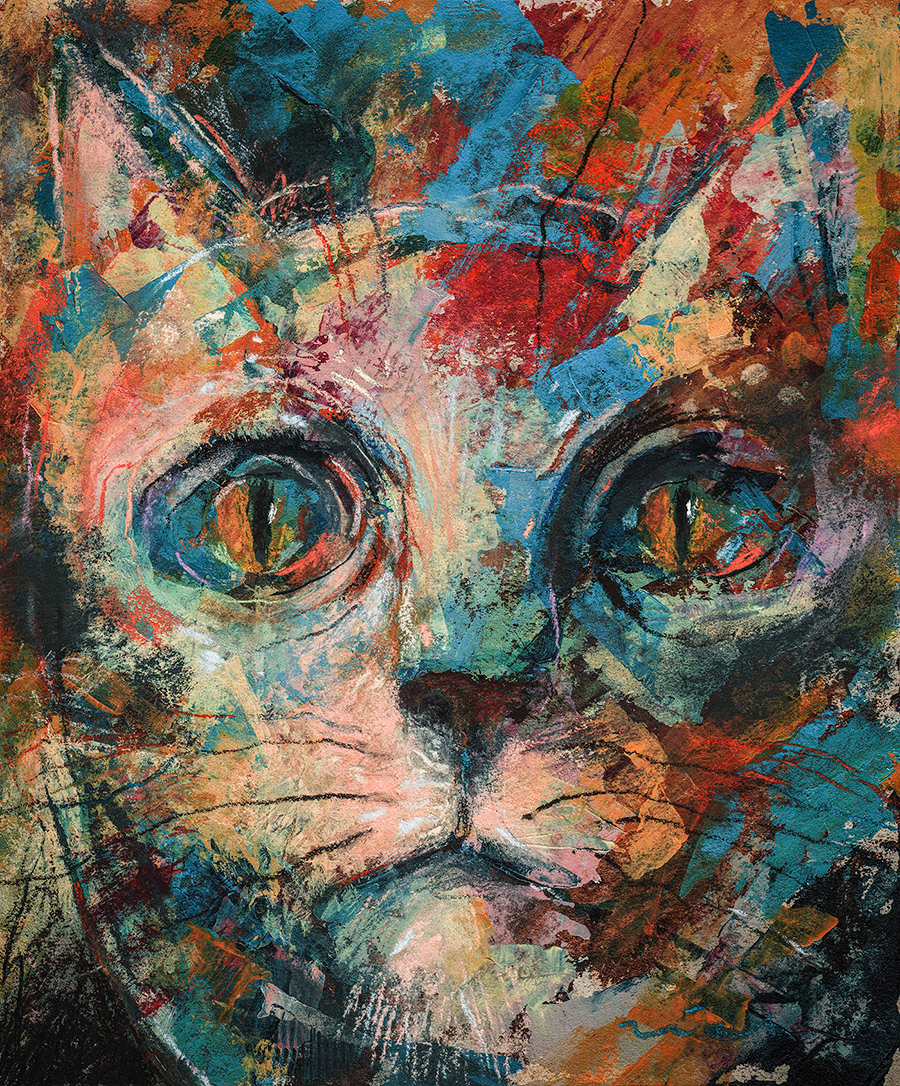 Cat No. 62. Cats series illustration - acrylics and soft pastels.
