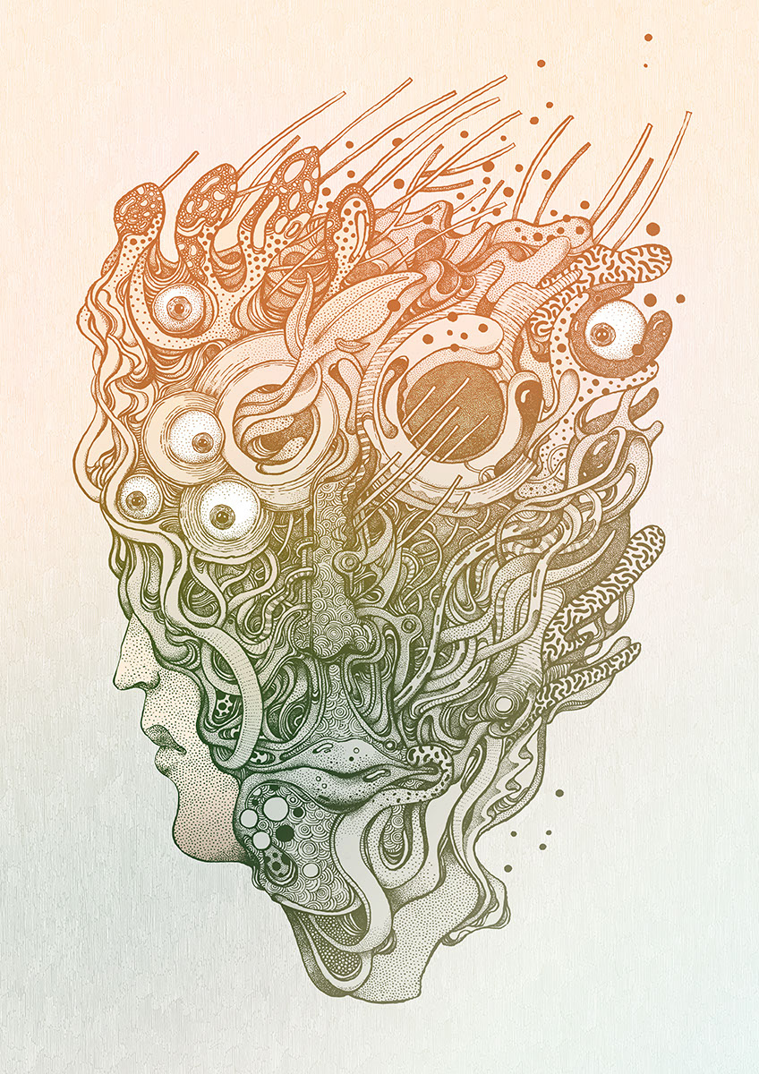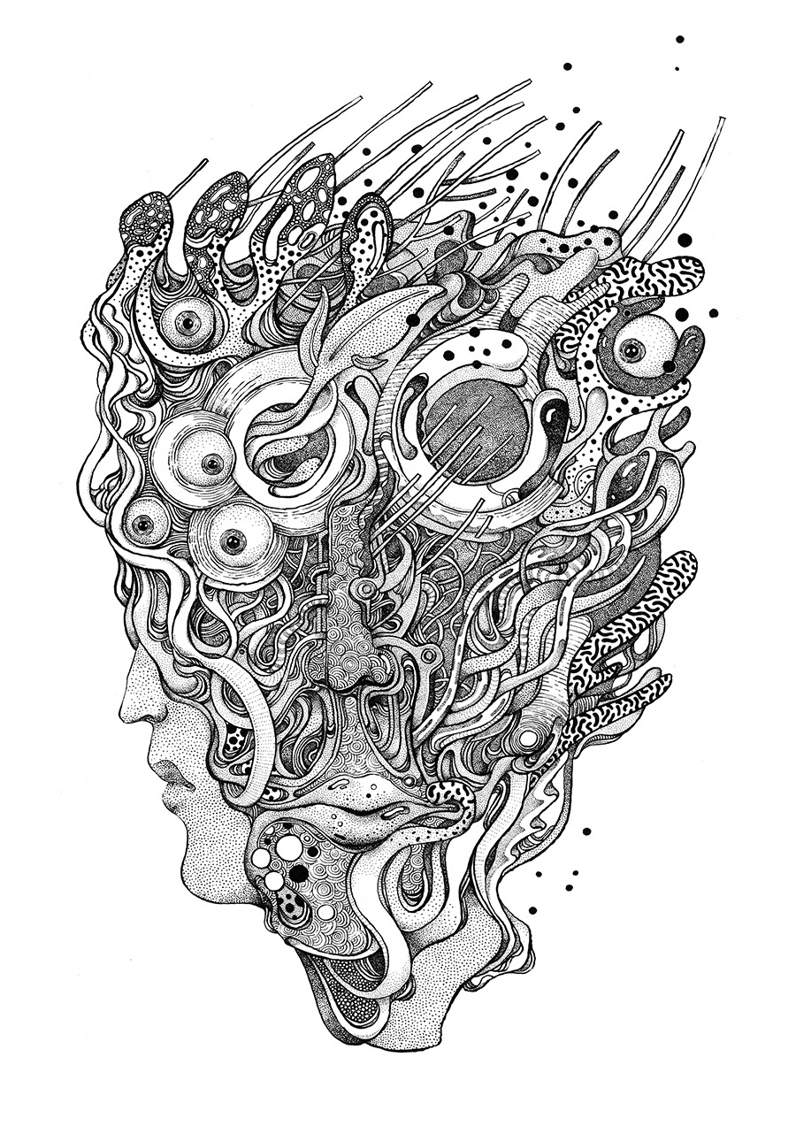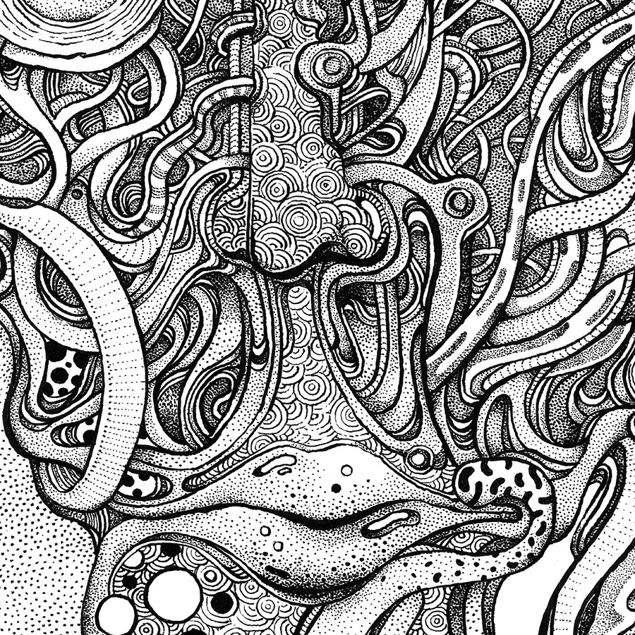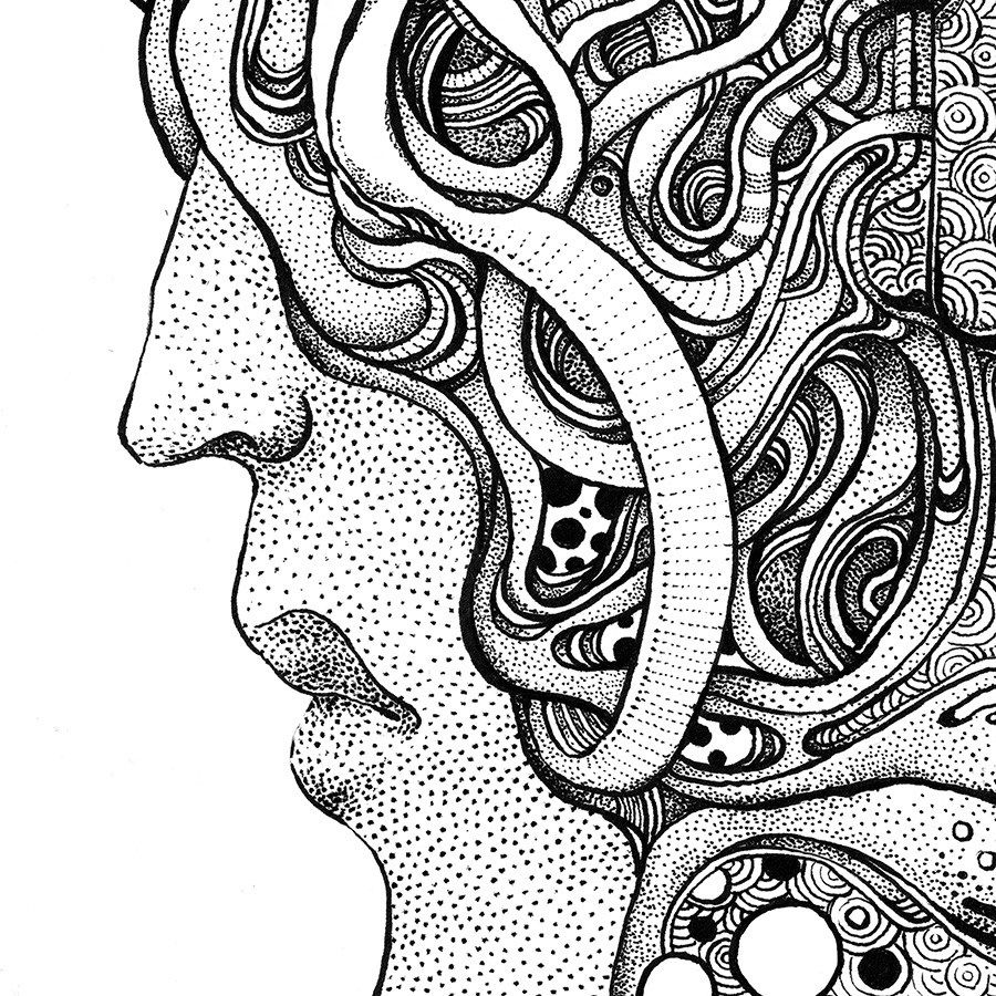 No. 16 in the series of drawings for "The Masks" personal project. Hand drawn with a brushpen on an A2 size paper.