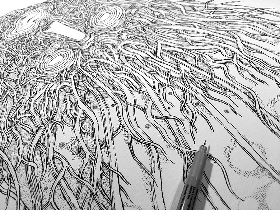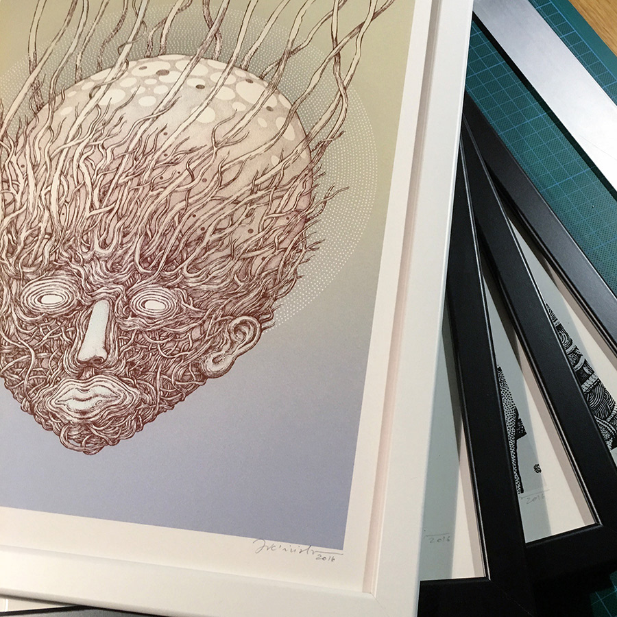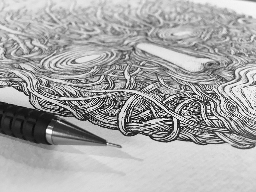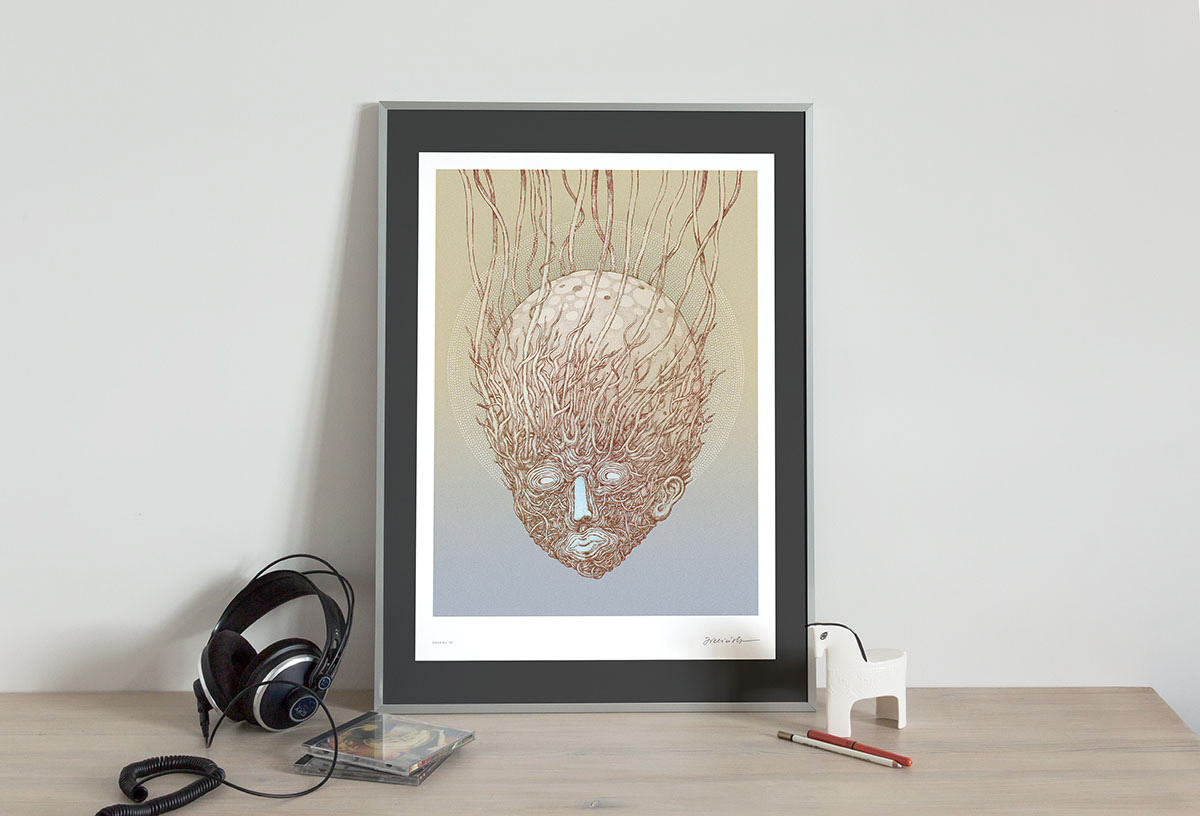 A part of my personal drawing project "The Masks" featuring a serie of fantasy and surreal faces/masks. Traditional analog drawing finished and colored in photoshop.