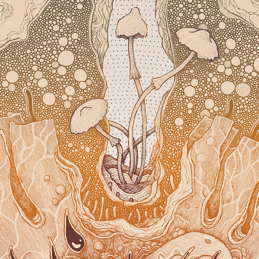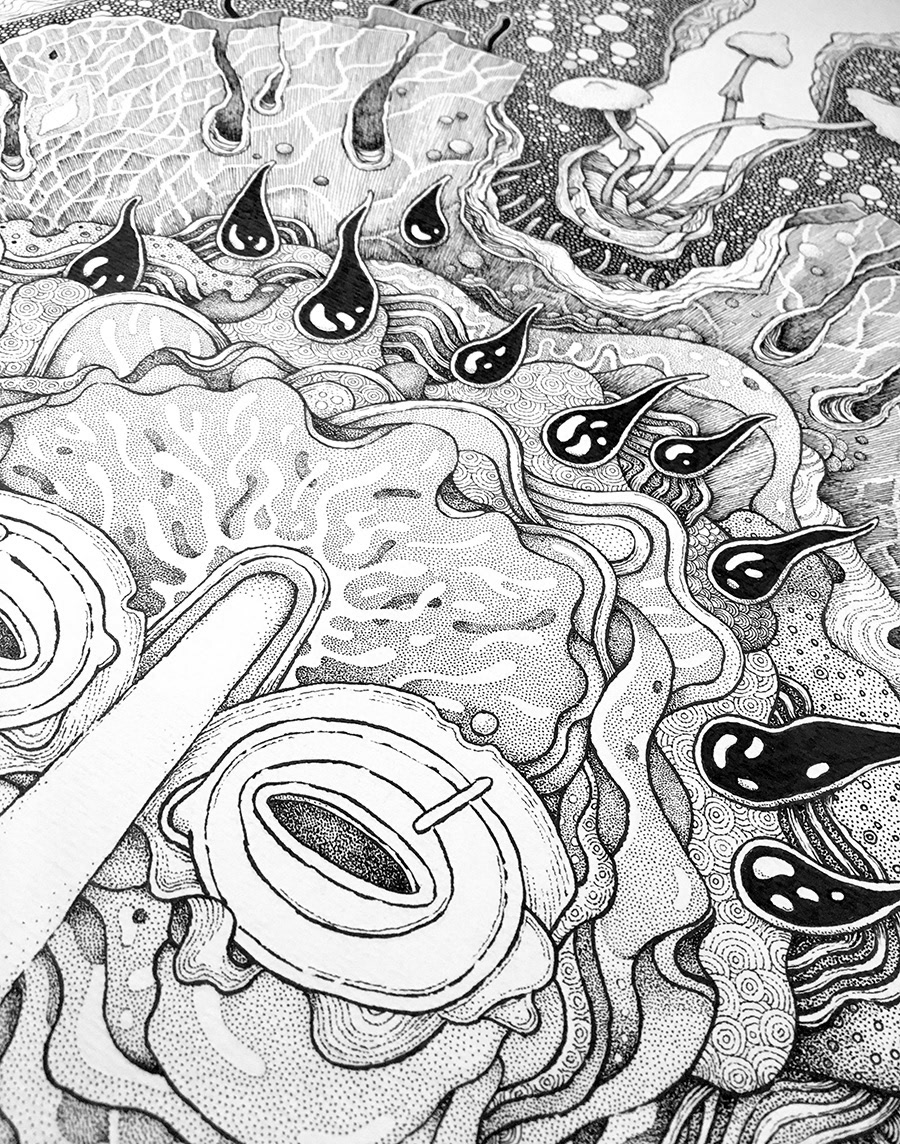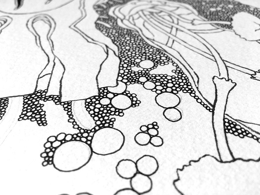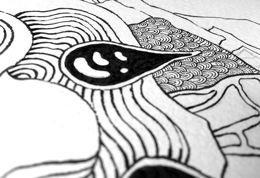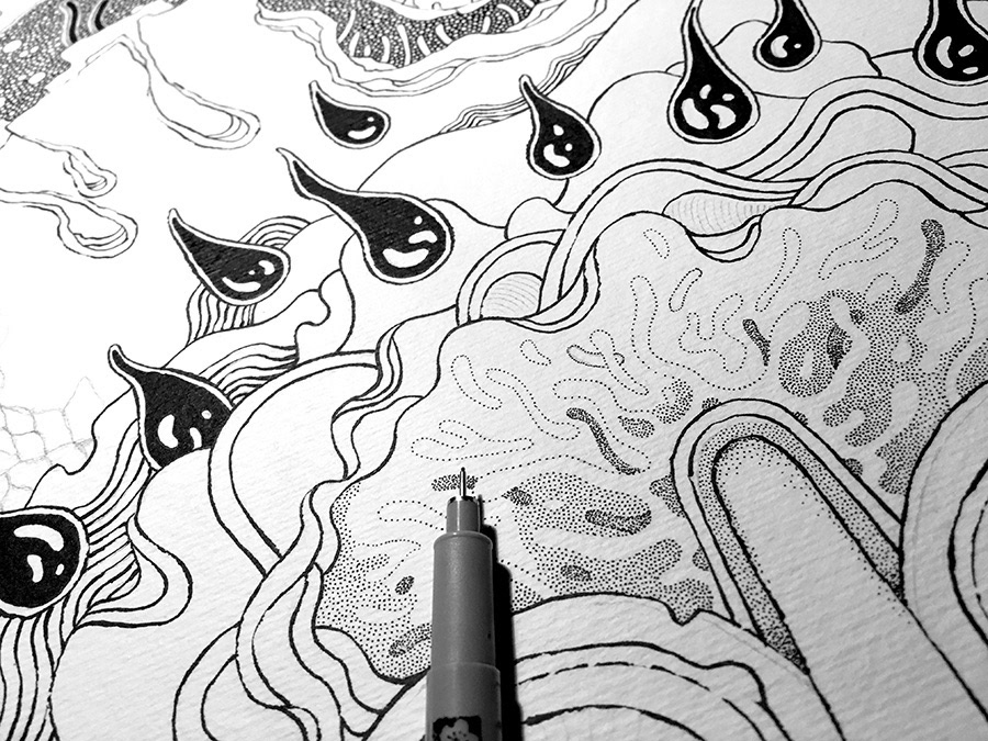 This is a part of my personal drawing project "The Masks" featuring a serie of fantasy and surreal faces/masks. Traditional analog drawing finished and colored in photoshop.